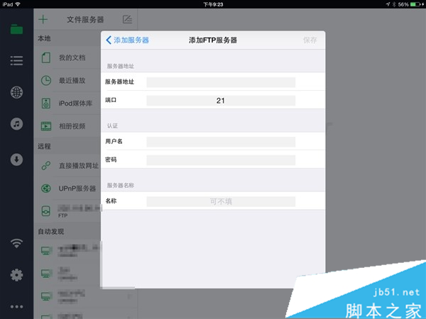 9、在iPhone/iPad上下载免费版OPlayer,点击左上角加号,然后选择 FTP 服务器。