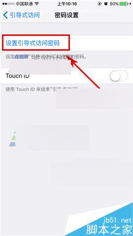3)打开后开始设置【密码】,重复两次就设置成功了,最后我们只需要在打开应用的时候快速按三下home键即可进入引导式访问。(如下图)