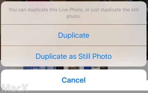 Live Photos—— 在 iPhone 6s 上,有全新的选项可以从 Live Photo 保存完整分辨率的照片。当使用分享菜单时,选择制作替身可以创建 Live Photo 的静态照片。