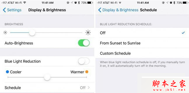 减弱蓝光——减弱蓝光可以自动在夜间降低 iOS 设备屏幕发出的蓝光,让 iPhone 或 iPad 的屏幕变成暖色,调查研究显示蓝光会导致用户难以入睡。