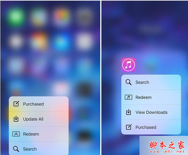 应用图标快捷操作—— iPhone 6s 和 iPhone 6s Plus 支持全新的 3D Touch 应用图标快捷操作功能,现在包括天气、设置、指南针、健康等应用都支持快捷菜单功能。设置应用支持快速访问蓝牙、WiFi、电池和壁纸。健康应用支持快速访问医疗急救卡、图表汇总等。指南针应用可以直接打开指南针或水平仪。