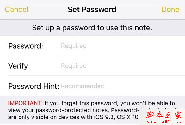 备忘录——备忘录新增可以使用 Touch ID 或密码保护功能。当这项功能开启后,进入备忘录时会需要输入密码或验证指纹,密码保护可以为某个备忘录设置。此外,备忘录应用还增加了通过创建日期、修改日期和标题排序功能。