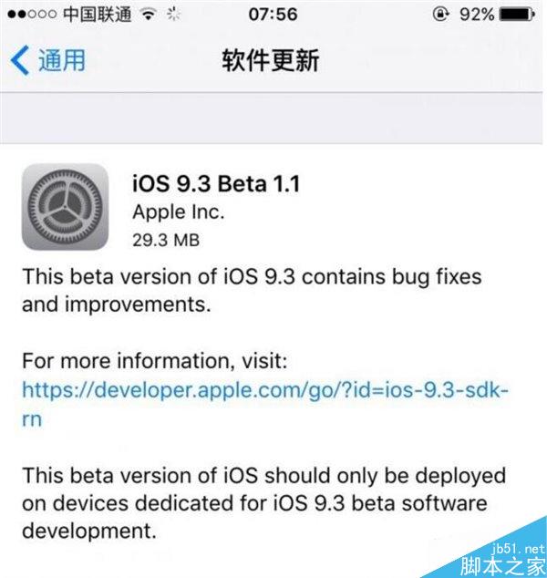 iOS9.3的更新带来了大量功能升级,包括多用户支持、调整屏幕色温、内置App的3D Touch功能增强和私人笔记等,具体更新的内容可以参考脚本之家之前的汇总文章《苹果iOS9.3 Beta1更新内容大全》。目前来看,本次iOS9.3 Beta1公测版的更新内容和上次开发者版本内容大体一致,具体若有新的更新内容,脚本之家会在稍后为大家整理报道。