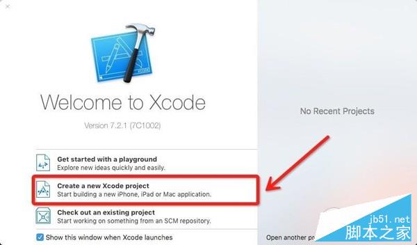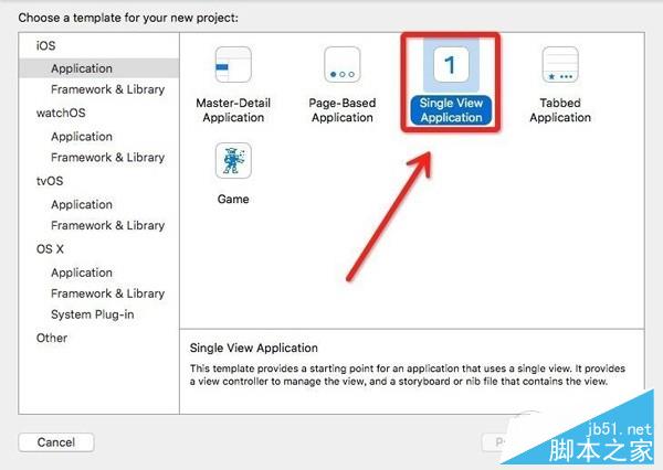 3、选择“Create a new Xcode project”创建一个新的项目,然后选择单视图,点击下一步。