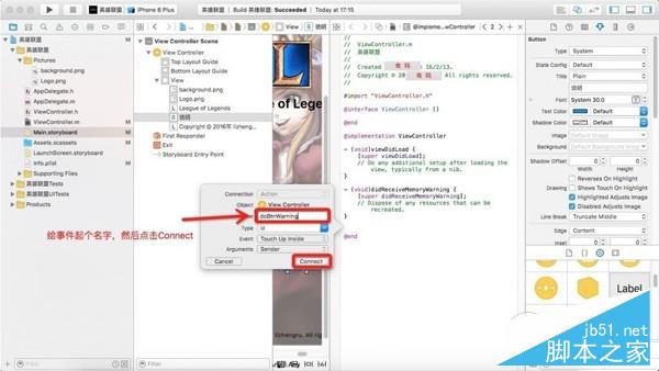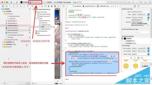 8、修改 ViewController.m 文件,赋予按钮功能。