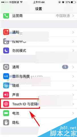 1)首先我们先打开【设置】,然后找到【Touch ID与密码】,打开后输入密码点击右上角的【完成】。(如下图)
