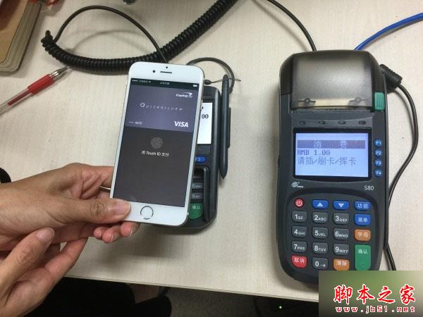 用户在线下支付时,只需要将手机靠近带有“银联云闪付Quick Pass”标志的POS机,使用苹果自带的指纹认证功能(Touch ID)就可以完成支付。