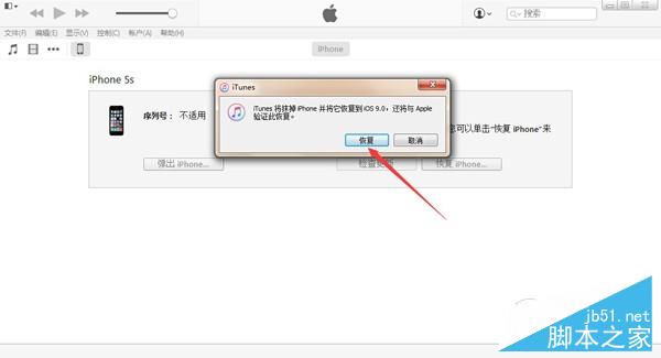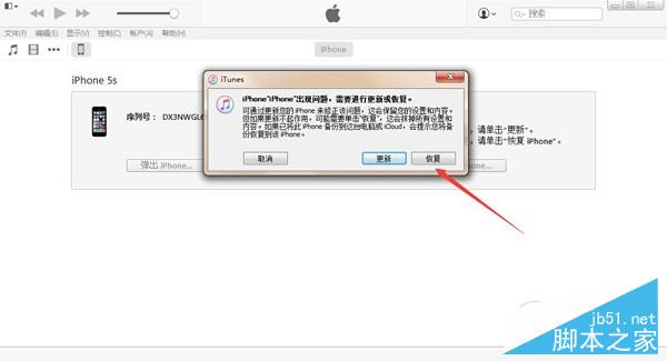 2、iTunes会自动检测到一台等待恢复的设备,按住键盘上的shift键+iTunes上的“恢复”,选择固件再恢复:
