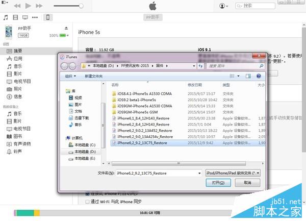 1、根据机型下载好对应的iOS9.3固件版本【iOS9.3固件下载地址】。