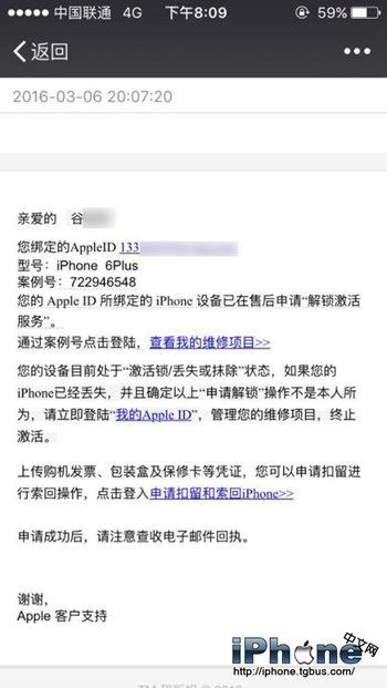这种钓鱼邮件一般是得到Apple ID账号、电话后给失主发送邮件、短信、打电话等。冒充苹果官方,声称查询到你的手机丢失,有不法分子正在刷机解锁你的手机,现在要阻止刷机解锁,然后为你要Apple ID账号和密码。