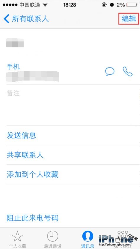 如果你追求个性铃声的话,那么下面这个小技巧你肯定不能错过,教你让iPhone6S为不同的联系人设置不同铃声方法教程。 步骤1:在手机通讯中点开一个联系人的详情页面,然后点击右上方“编辑”按钮。