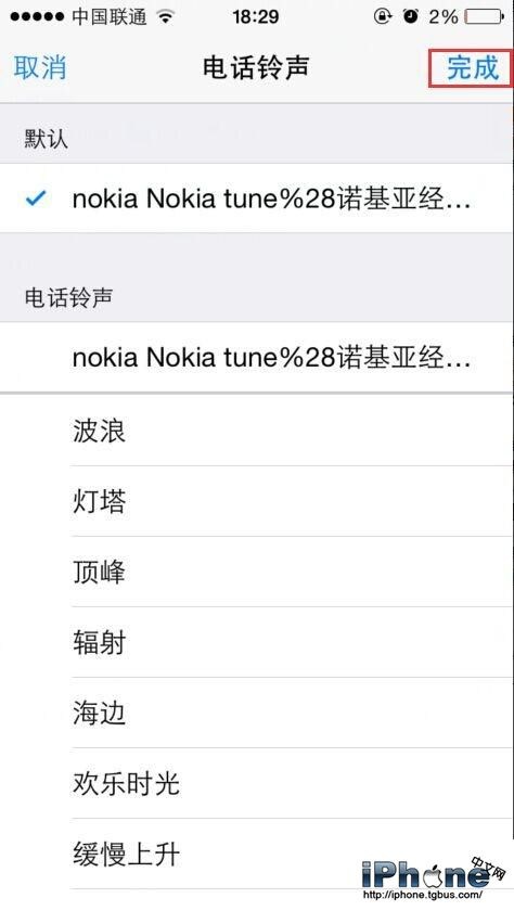 步骤3:为该联系人点选一个专属的铃声类型,再点右上方“完成”按钮即可。