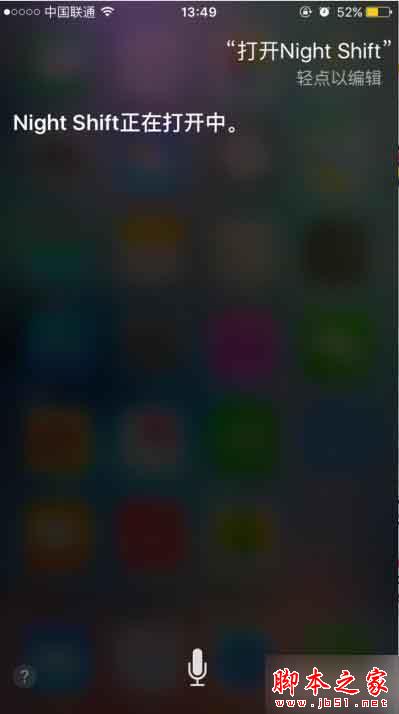 2、打开 Siri然后再对着它说【打开Night Shift】,再然后你看着你的屏幕就会神奇的启动了Night Shift夜间模式