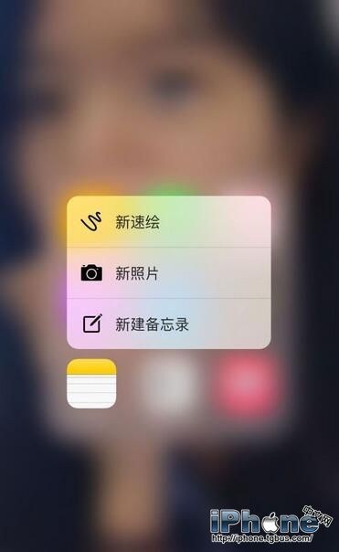 1.首先,我们可以在备忘录图标上按压,利用3D Touch新建一个备忘录。
