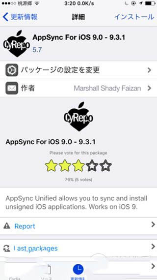 2、今天有网友表示,在Cydia当中发现了著名越狱插件AppSync的更新,而在上面我们赫然发现AppSync支持iOS版本变成了iOS9.3.1。这可能意味着开发者内部已经开始测试最新版盘古iOS越狱插件的兼容性。(APPsync是iOS设备越狱后必装的补丁)