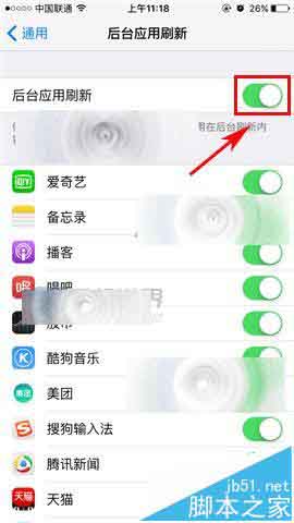 2)打开后我们再点击【后台应用刷新】,最后将椭圆往左拉关闭就可以了。(如下图)