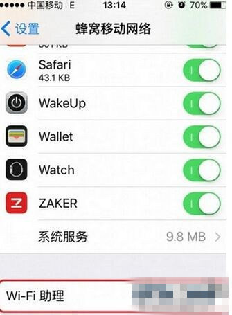 iPhone手机中就加入了一项WiFi助理功能,由于其被怀疑偷跑流量,而被大家无情的关闭。