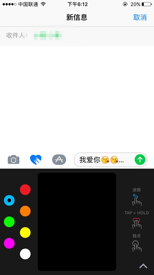 当然了,如果你觉得这样的emoji表情还不能满足你的需求话,我们还可以尝试使用Scibble触控板,直接将静态的涂鸦或动态表情发给对方,这样表达的效果更加强烈一些。