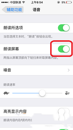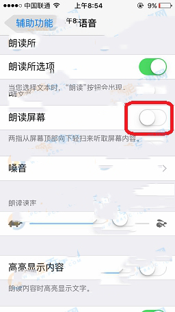 4.最后将朗读屏幕后面的开关调整为关闭状态即可,如图: