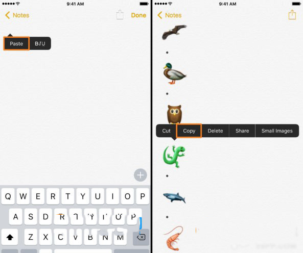 5.粘贴刚刚复制的 emoji 到备忘录中
