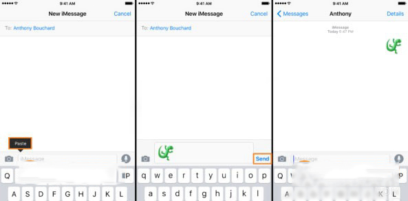 7.接下来前往信息应用中的对话框粘贴刚刚的 emoji 试试吧