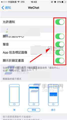 2)找到【微信】,最后将通知选项全部打开就可以了,就算他们撤回了此前发的消息,在通知中心和锁屏界面都是可以显示的哦。(PS:仅支持文字消息,图片和小视频暂不支持)(如下图)