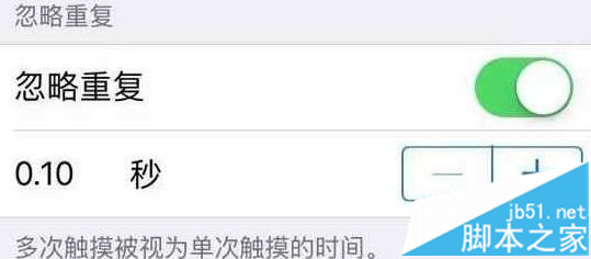 第二项功能是忽略重复,选项时间越长,就会把多次点击屏幕当成一次!也可以用于防止错误碰到屏幕!