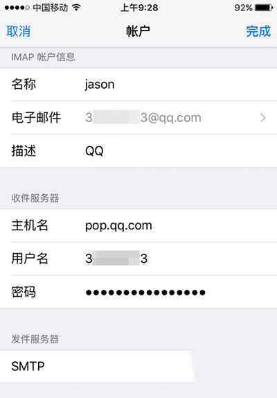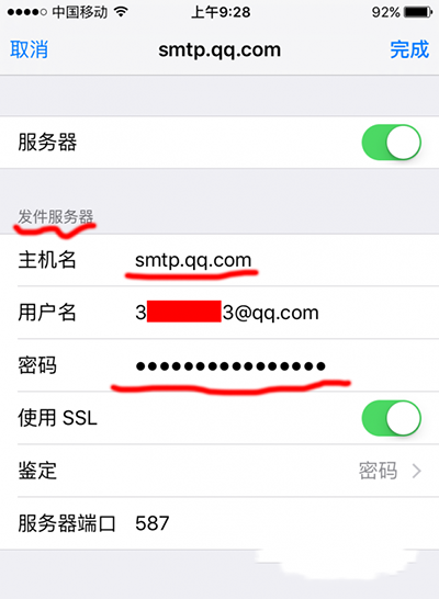 dtwydmlpunykbjba-----这个要手机设置端要使用 发件服务器密码 其他如图设置