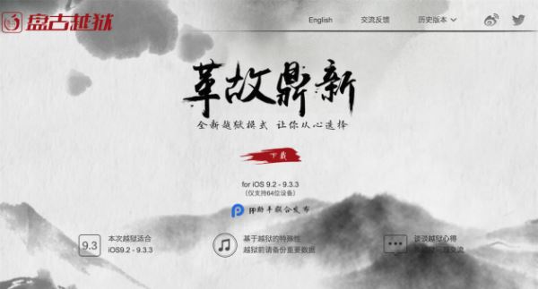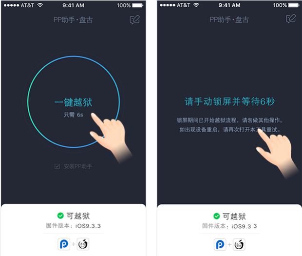 本次盘古越狱iOS9.2 – iOS9.3.3 越狱工具需要借助pp助手PC版软件,支持设备有iPhone5s、iPad mini2、iPad Air及以上设备等。