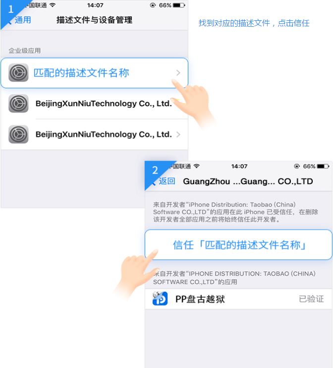 在「设置」-「通用」-「描述文件与设备管理」完成应用信任设置
