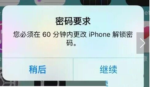 iPhone提示“您必须在60分钟内修改iPhone解锁密码”的解决办法: