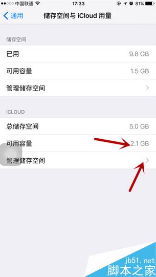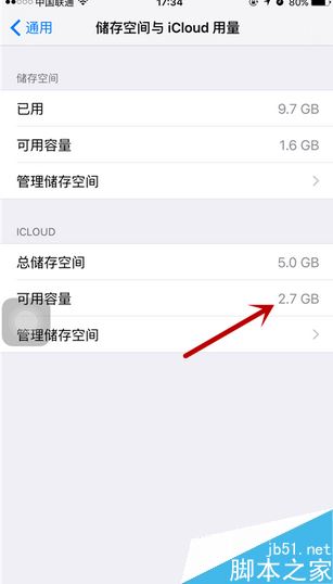 进入之后我们可以看到下方iCloud的储存空间,确认快没有的时候,点击最下方的管理储存空间。