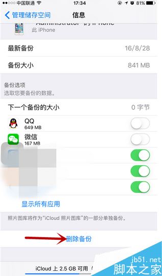 这一步操作完毕之后,就可以点击下方的删除备份了。