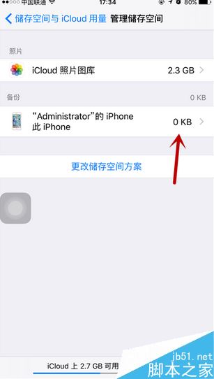 删除备份之后,返回到上一个界面,我们就可以看到上面备份的占用为0kb了。