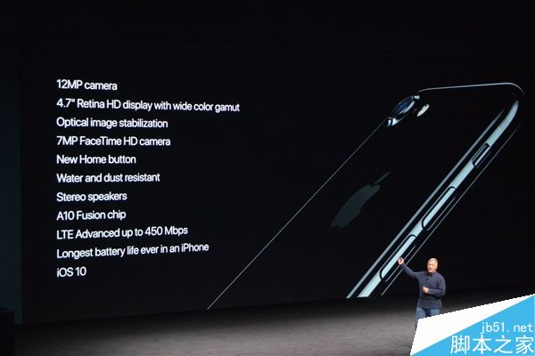 GPU图形处理方面对比A9提升三分之二,对比A8提升三倍。苹果说这是目前最强大的智能手机图像处理芯片。在续航方面,iPhone 7比iPhone 6s提高了2小时,iPhone 7 Plus比iPhone 6s Plus多了1个小时。
