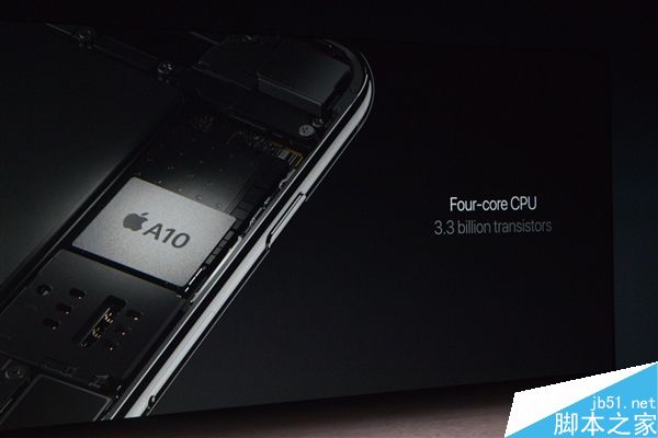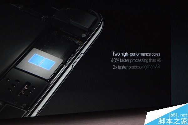 iPhone 7采用A10四核处理器。两颗高性能核心,比A9快40%比A8快两倍;两颗高效能核心,配合苹果设计的性能控制器改善续航能力。