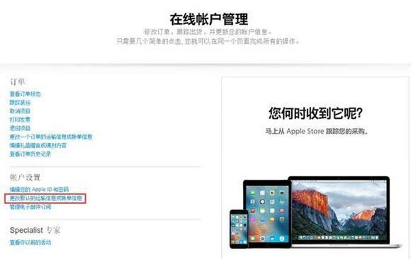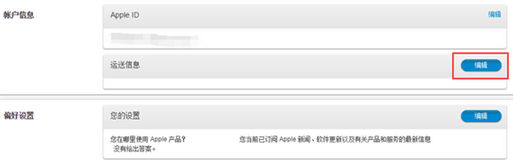 ▼ 点击苹果官网右上角的购物袋,点击“账户”进入在线账户管理,选择“更改默认的运输信息或账单信息”进入账户设置(此时会再次登录Apple ID一次),在运送信息栏点击“编辑”按钮就可添加您的收货地址,根据提示填写上能够亲手收货的地址与联系方式。