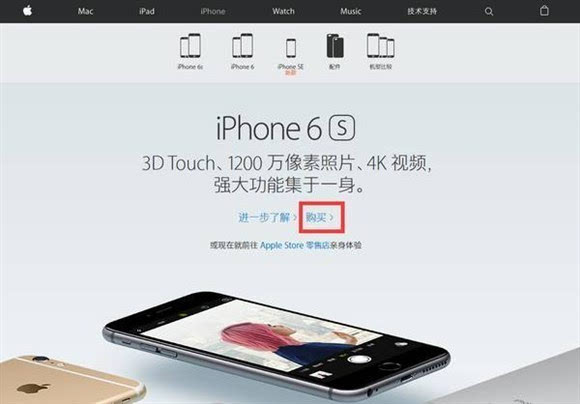 ▼ 经过一系列的前期准备(购买入口、Apple ID注册、收货地址填写),接下来就是“正菜”购买/预订iPhone7(本文以iPhone 6s 64GB无合约版为例)。由于苹果官网改版,不再有单独的在线商店入口,所以只需进入iPhone7的介绍界面,直接点击“购买”即可。