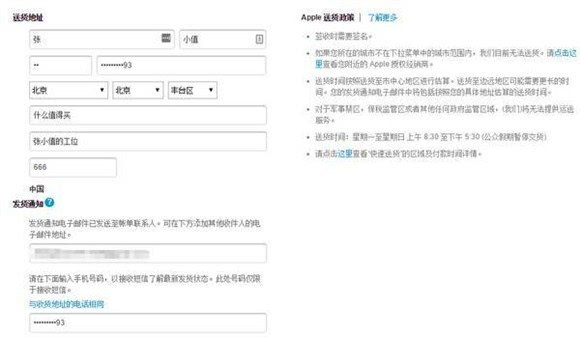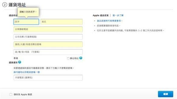 ▼ 需要提醒的是,苹果香港官网不支持简体中文,所以在填写姓名、配送地址(运货地址)和信用卡账单地址时,请使用繁体中文和英文。