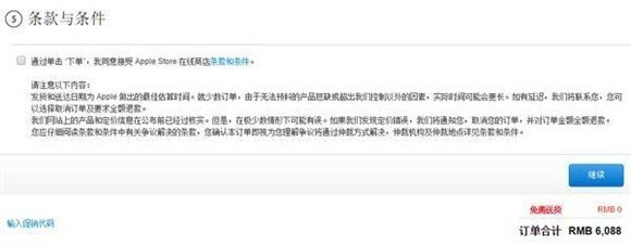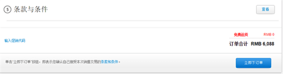 ▼ 继续点击“继续”,进入条款与条件页面,勾选“继续”之后就可点击“立即下订单”
