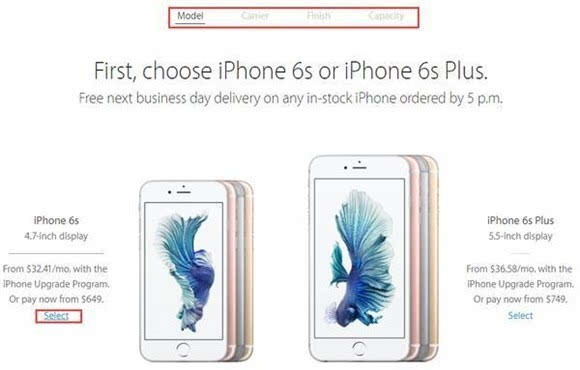 ▼ 在选购这个环节,美行和国行是有一定区别的,因为北美机型多为运营商合约机,多一个选择运营商的步骤,而且部分型号有网络锁,国内无法使用。所以在选择版本时请留意,选择带有“Unlocked”或者“SIM-free”字样的机型,这些才是无锁的机器,后者可以看作美版全网通机型。