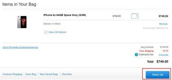 ▼ 与中国官网同样的步骤,确认型号无误,然后点击“Check Out”进行结算。