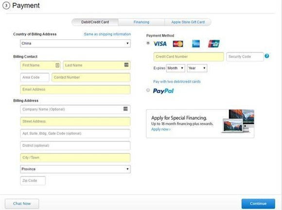 ▼ 苹果美国官网支持用Visa、MarsterCard、美国运通、银联的信用卡以及PayPal支付,而且支持用两张卡付款,以免单张卡额度不够(美国人民真会玩)。