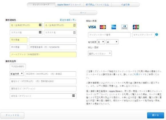 ▼ 苹果日本官网支持用Visa、MarsterCard、美国运通、Diners Club、JCB的信用卡付款,填写无误后点击蓝色按钮确认就可以了。