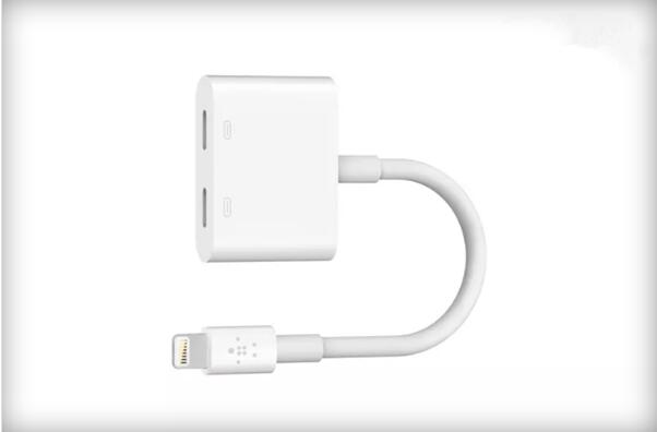 周边配件厂商贝尔金也给出了类似的附件来解决这个尴尬,它们推出的新款转接头可以把一个Lightning接口分成两个,这样就能边充电边听歌了,当然,这还得是Lightning接口耳机,如果是3.5mm耳机插头,你还得再接一根下面这样的Lightning To 3.5mm耳机插孔转接线上去。