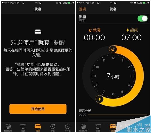 苹果的时钟新增了就寝提醒功能,用户设置了就寝时长和起床时间等偏好之后,手机可以对用户的睡眠情况进行监测和分析,界面设计与Apple Watch如出一辙。
