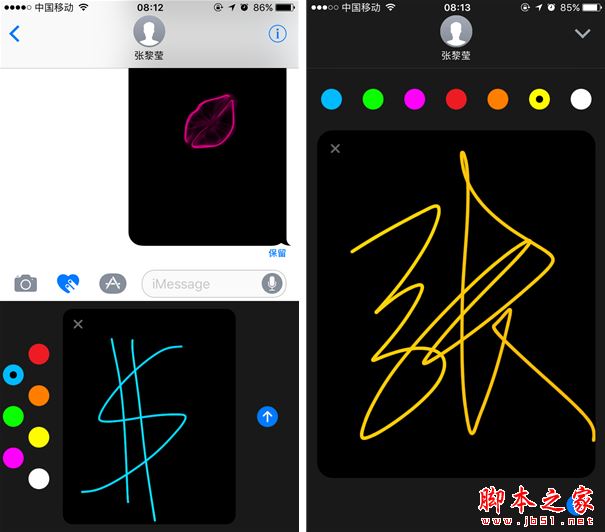 相机功能顾名思义,就是可以让用户直接拍摄照片或发送图片库中的照片给对方,透过Markup功能,可对照片进行再编辑,比如调整亮度、对比度等等;Digital Touch 这个一开始就给小编一种似曾相识的感觉,没错,其实就是将Apple Watch上的Digital Touch移植了过来,比如双指长按可以打出“爱心”,单指轻点打出“烟火”等等,在手机上使用 Digital Touch 自然是比在 Apple Watch 上使用更为便利。