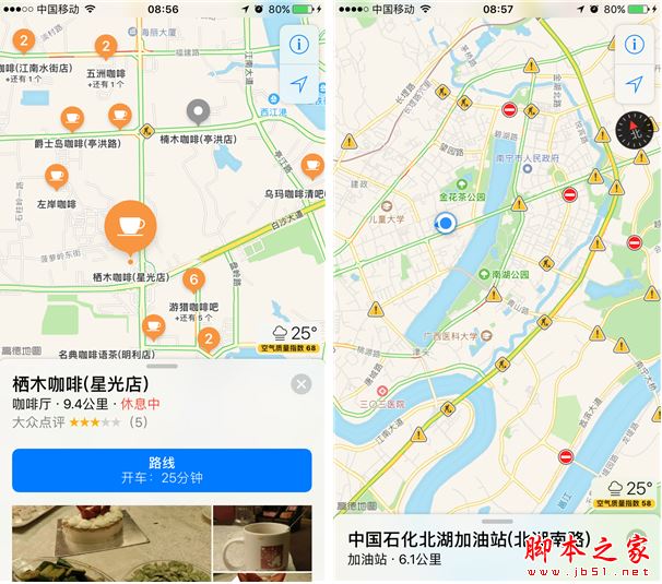 iOS 10的地图应用集成了更多的实用功能,在这里你除了可以查看自己所处的位置外,还能够查看附近的服务设施,比如餐馆、加油站等等,地图应用支持餐馆预约、叫车等服务(目前大部分第三方服务还没有正式上线),更强大的是提示你当前路况。当然了,Siri 也与地图应用进行了对接,它会记录下每一次的地图使用情况,包括停车位置,餐馆预约等,当你要前往常去的地点时,地图会第一时间给出一个最快捷的路径,导航过程中可以拖动和缩放地图,与 Siri一样,地图应用未来会与更多的第三方对接,支持更多的第三方服务功能。