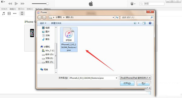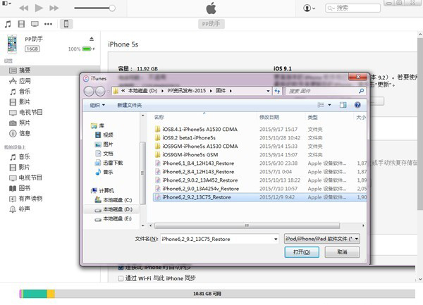 4、iTunes会弹出对话窗--请选择已经下载好的固件--点击更新--等待iTunes运行。
