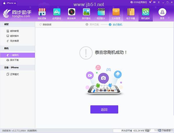 方法一:变砖设备可用同步助手一键更新iOS10